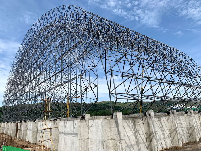 (2)网架加工前应对现场尺寸进行复测,确认无误后方可进行加工、安装;网架制作、运输、安装应遵守《空间网格结构技术规程》JGJ7-2010、《钢网架鹰潭螺栓球节点》JG/T 10-2009、《钢网架鹰潭螺栓球节点用高强度螺栓》 GB/T 16939-2016、《鹰潭钢结构鹰潭工程鹰潭施工规范》 GB50755-2012、《鹰潭钢结构鹰潭工程施工质量验收标准》 GB50205-2020。