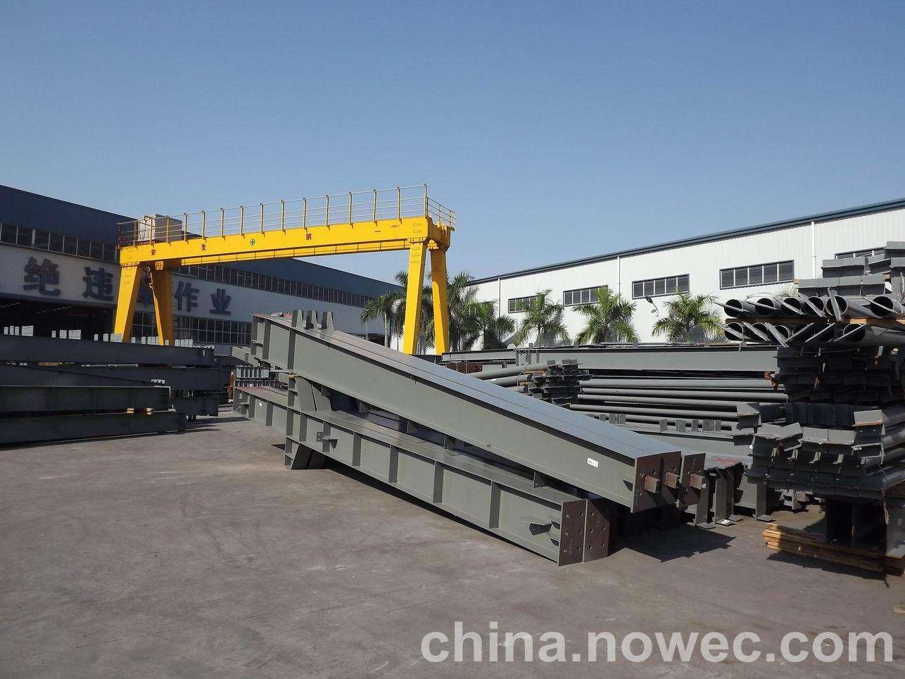 条状单元一般沿长跨方向分割,其宽度约为1~3个网格,其长度为l2或l2/2(l2为短跨跨距)。块状单元一般沿鹰潭网架平面纵横向分割成矩形或正方形单元。每个单元的重量以现有起重机能胜任为准。条(块)与条(块)之间可以直接拼装,也可空一网格在高空拼装。由于条(块)状单元是在地面拼装,因而高空作业量较高空散装法大为减少,拼装支架也减少很多,又能充分利用现有起重设备,故较经济。这种安装方法适用于分割后网架的钢度和受力状况改变较小的各类中小型网架,如两向正交正放四角锥、正放抽空四角锥等网架。